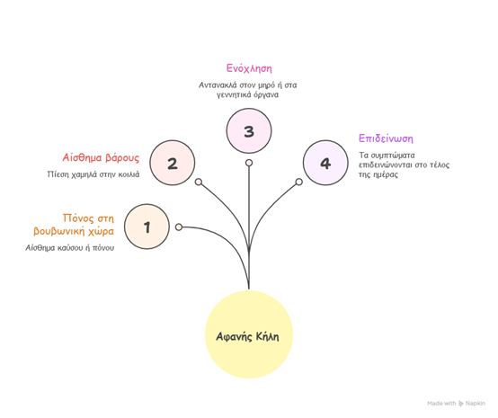 - Αίσθημα βάρους ή πίεσης χαμηλά στην κοιλιά